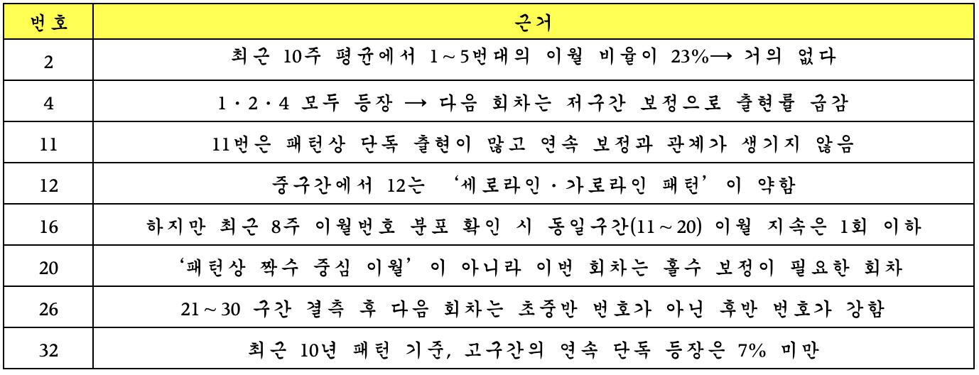 “제외수는 근거가 핵심이다” / 최근·중기·패턴·구조 흐름에 기반하여 선정