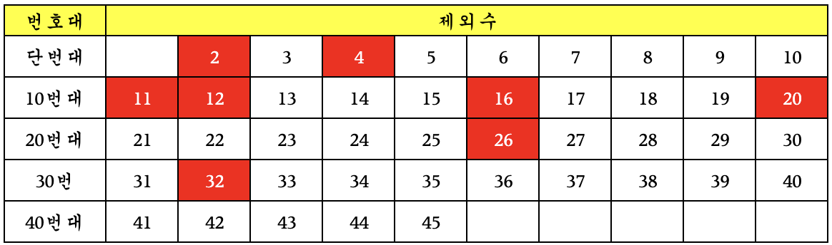 이번 글에서 다루는 핵심 제외수는 다음 8개입니다.